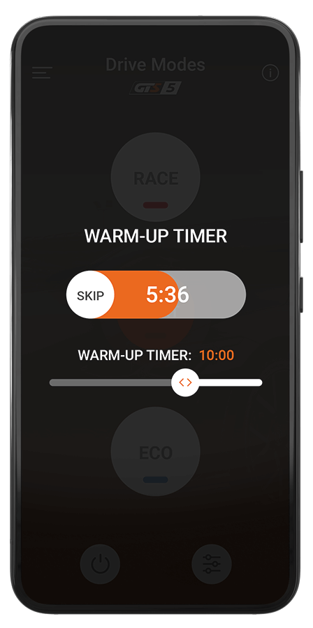 Auch Motoren sollen Ihre Leistung erst dann abrufen, wenn sie auf Betriebstemperatur sind. Mit dem Warm-Up Timer wird die Leistungssteigerung erst dann zugeschaltet und abgerufen, wenn der Motor warm gefahren ist. Dadurch wird Ihr Fahrzeug zusätzlich geschont.