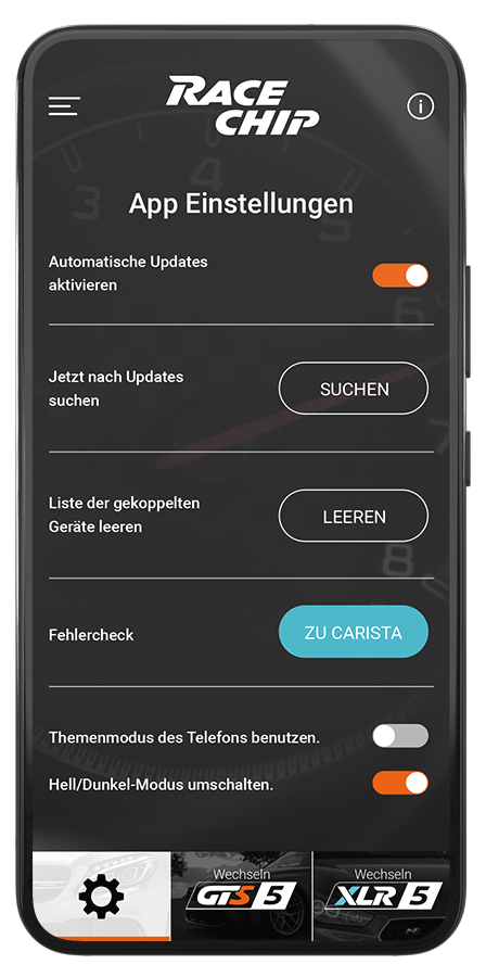 Die RaceChip App können Sie kostenfrei herunterladen und kennenlernen. Mit dem RaceChip können Sie diese unglaubliche Funktionalität für einen Aufpreis von nur na CHF nutzen.